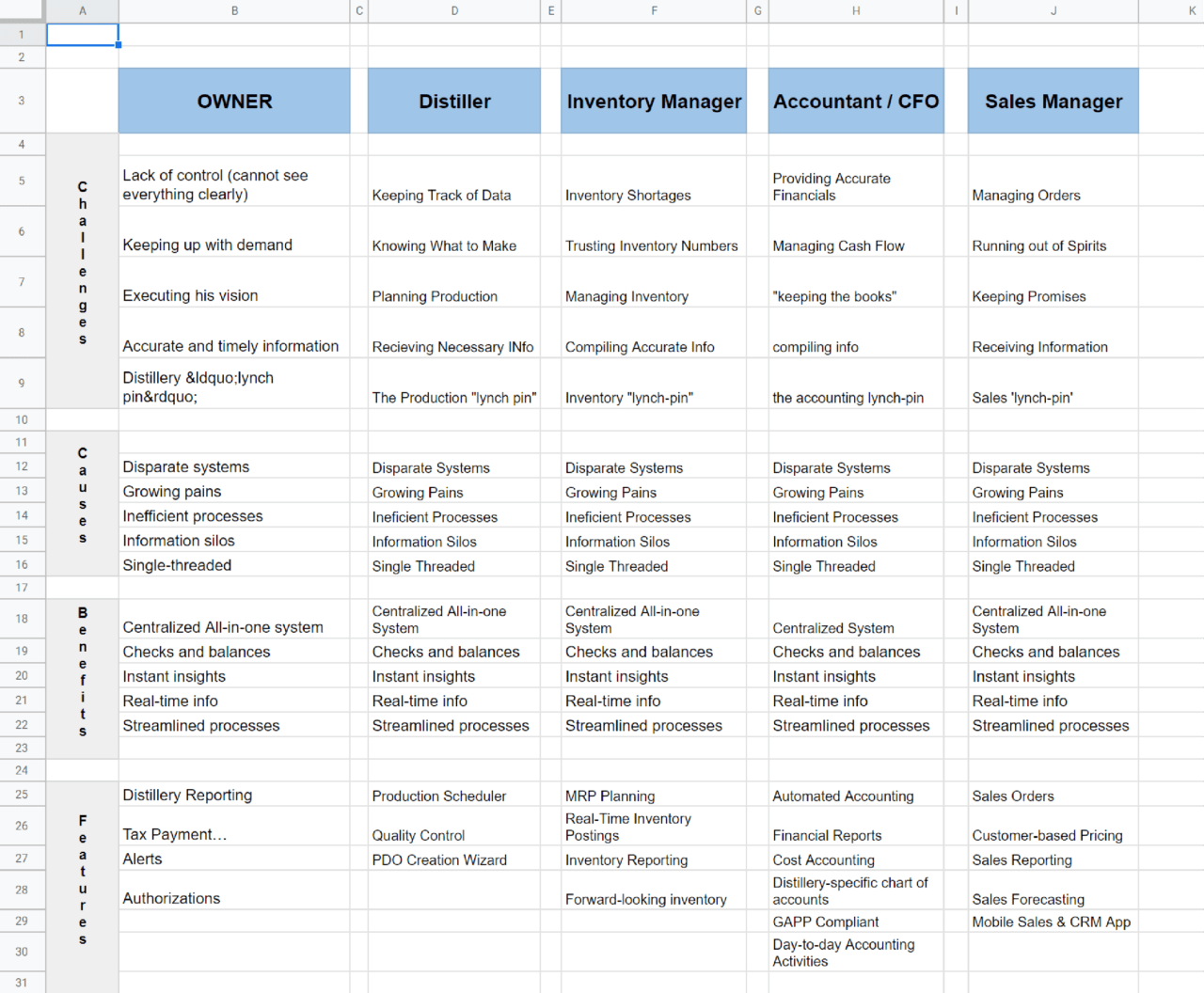 TTB software helps with management of some complicated things, so the team was tempted to complicate the navigation of their site to show their expertise. I used the following chart to try to show what each user type would be interested in seeing, and to try to prove the need to reduce complexity in the IA: