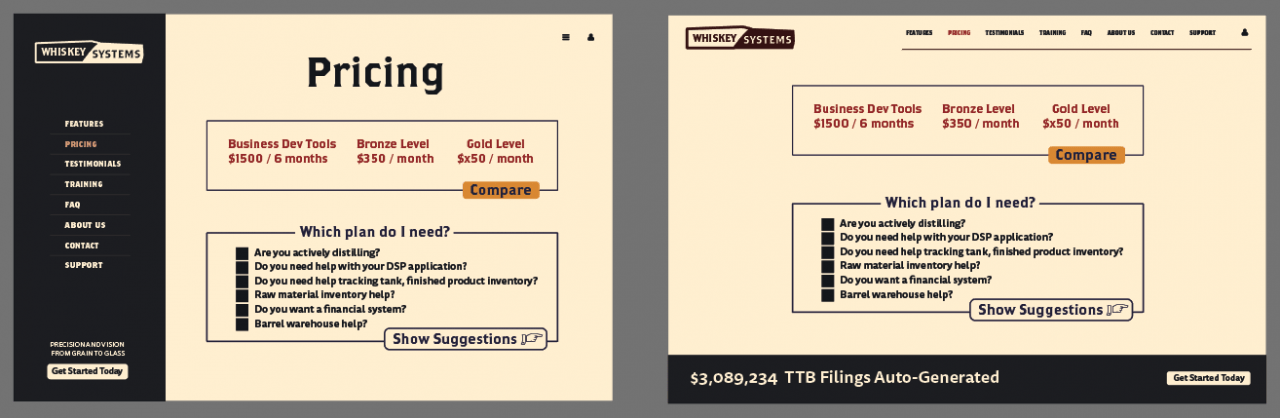 I was proud that these designs presented a clean and organized brand story, and that the information architecture we developed did not overwhelm.